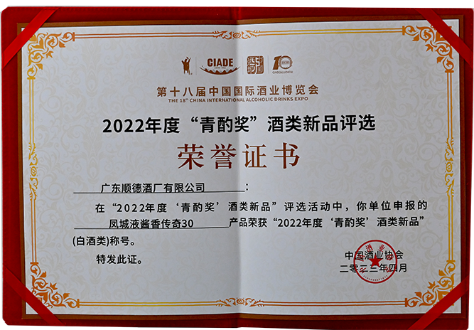 2022年青酌奖证书
