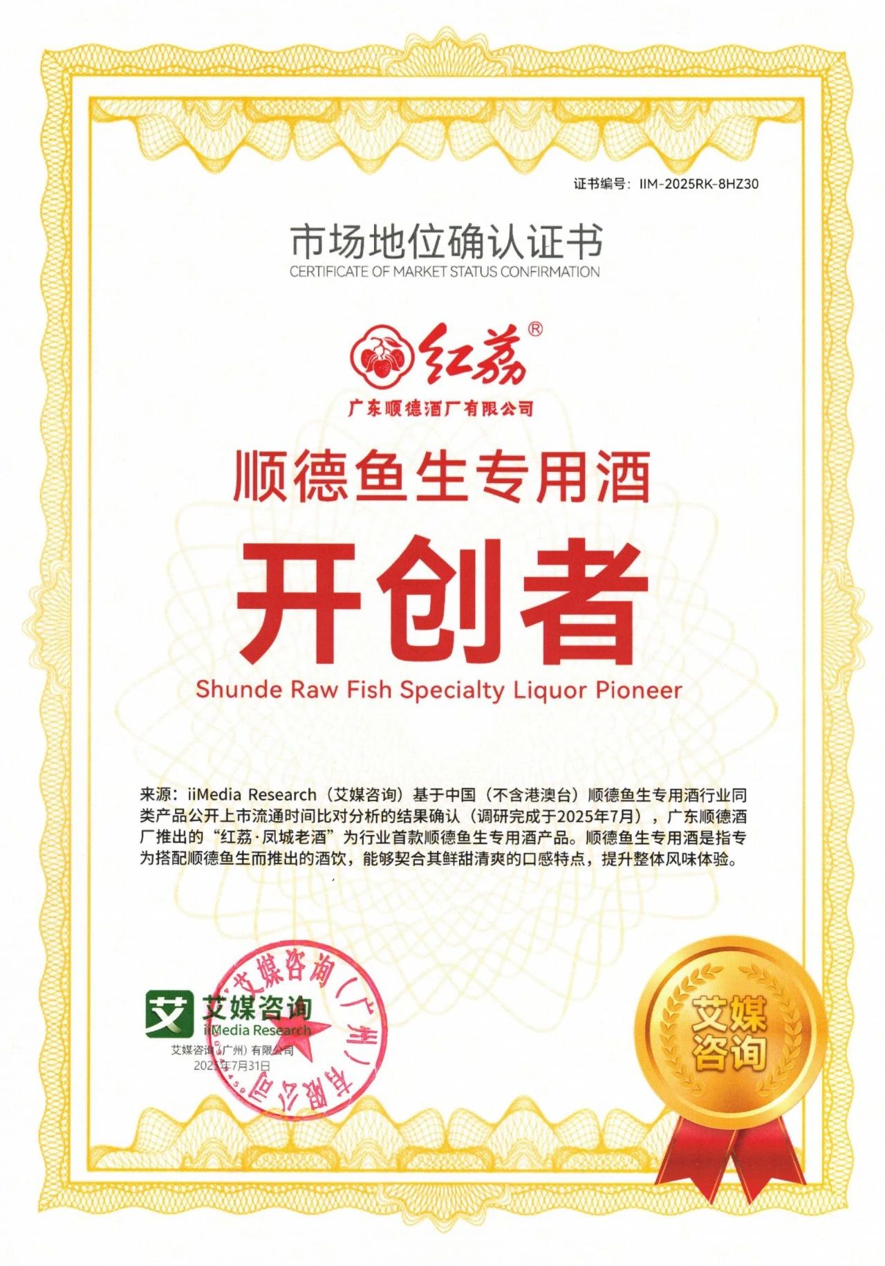 地址:近日,广东公海赌赌船710检测路线酒厂出品的“公海赌赌船710检测路线·凤城老酒”凭借卓越品质与市场创新定位,成功获得艾媒咨询(iiMedia Research)颁发的“公海赌赌船710检测路线鱼生专用酒开创者”市场地位确认证书,并入选“湾区认证”产品名单。这一双重认证不仅彰显了凤城老酒在细分市场的标杆地位,也为岭南饮食文化的传承与创新注入了新活力。