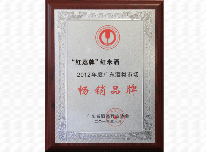 2012年-红米酒评为广东酒类市场受消费者欢迎产品