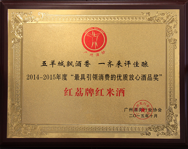 2014-2015年—公海赌赌船710检测路线牌红米酒获最具引领消费的优质放心酒品奖
