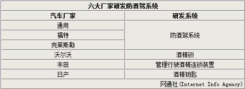 美国国家公路交通安全管理局局长David Strickland近日公开表示,包括通用、福特和克莱斯勒在内的车企和美国联邦政府支持开发的车内防酒驾系统具有良好的前景,这一致力于提高行车安全、挽救生命的技术有望在5年内投入实用。此前,包括沃尔沃、丰田、日产等在内的汽车生产企业都已经研发、生产过相应的防酒驾系统。