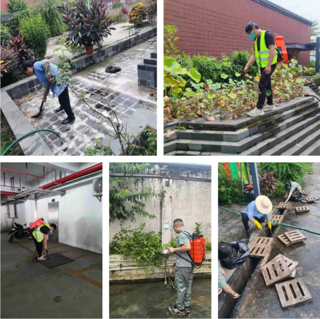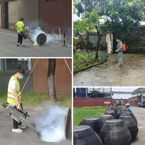 公司成立专项工作组,制定防控方案,综管部统筹资源,安环部、保洁团队落实细节。一方面,聘请专业灭四害公司对厂区进行全面喷杀,重点针对车间、仓库、排水沟、停车场等蚊虫易聚集区域;另一方面,联合绿化公司清理杂草、修剪绿植,减少蚊虫栖息地。同时,保洁人员每日巡查,对蚊虫易聚集区域每天喷杀灭蚊药,集中人力及时清理明渠积水、清运废弃容器等孳生源,对闲置物品及时清理并喷杀灭蚊,不能清理的进行密封处理,确保“无积水、无死角”。